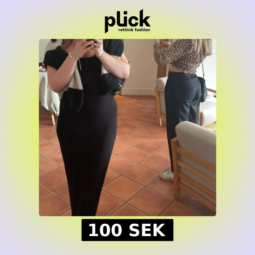 Säljer en stilren svart långklänning med smal passform. Ner till marken på mig som är 180