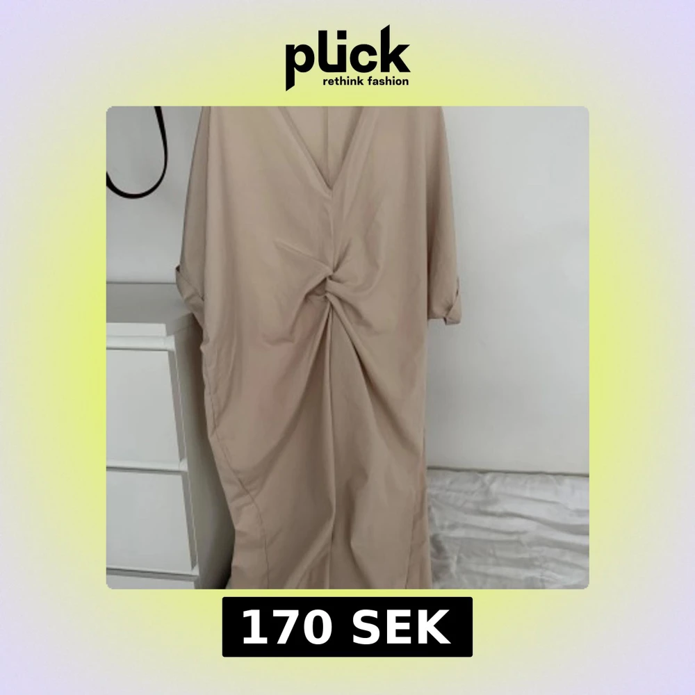 Snygg beige långklänning med v-ringning och knutdetalj framtill. Klänningen har korta ärmar och en avslappnad passform. Perfekt för dig som gillar minimalistisk stil och mjuka färger.