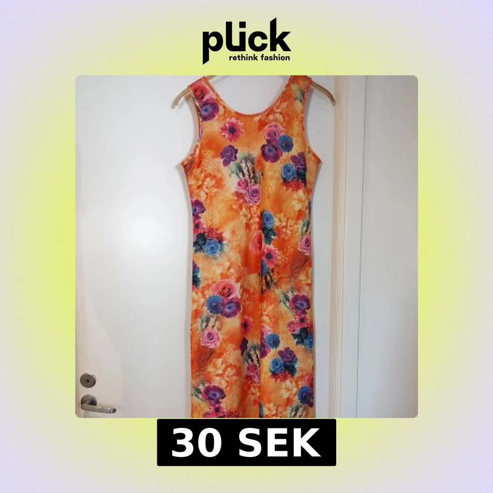 Säljer en maxad långklänning med blommigt mönster i orange, lila, blå och rosa toner. Klänningen är ärmlös och har en rak, enkel form som ger en chill vibe. Perfekt för dig som gillar färg och vill sticka ut. Materialet känns lätt och svalt mot huden. Den är sydd av mig och passar någon som bär large. Den är stretchig och går till fotleden på mig som är 168 cm.