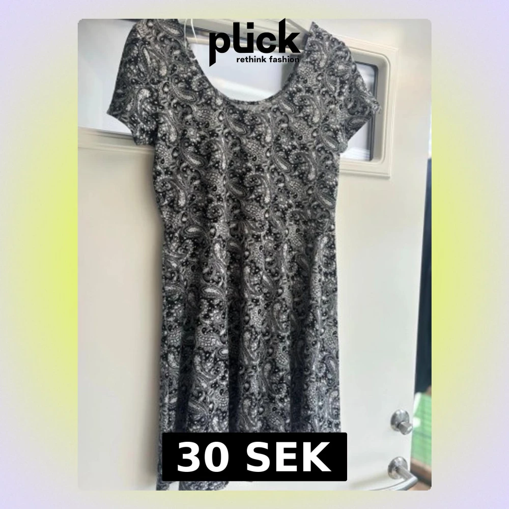 Kortklänning med svart och vit paisleymönster, rundad urringning och korta ärmar. Klänningen har en lätt utställd passform och är gjord i ett mjukt, stretchigt material som känns bekvämt hela dagen.
