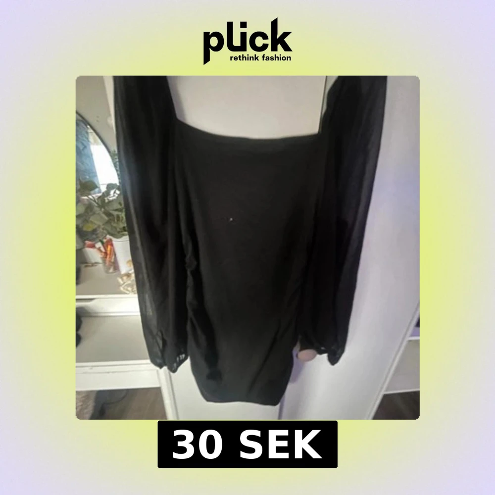 Snygg svart kortklänning från Shein med raka linjer och transparenta meshärmar som ger en cool vibe. Klänningen har en fyrkantig urringning och är figurnära i modellen. Perfekt för dig som gillar stilrena plagg med en twist.