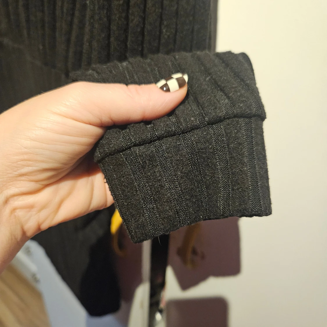 Svart ribbad stickad poloklänning