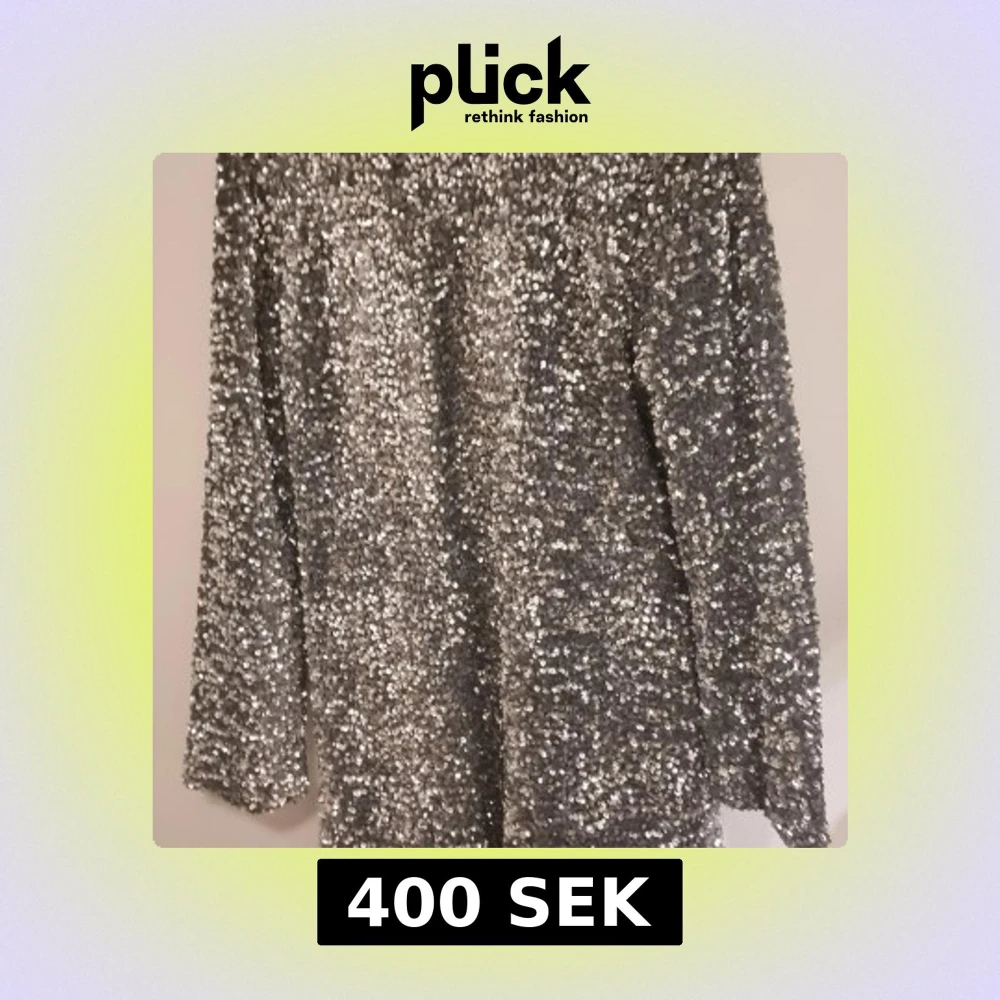 Snygg och glittrig klänning i silver med paljetter över hela ytan. Den har en öppen rygg och långa ärmar, perfekt för en festlig kväll. Klänningen är i one size och ger en glamorös look. Helt oanvänd.