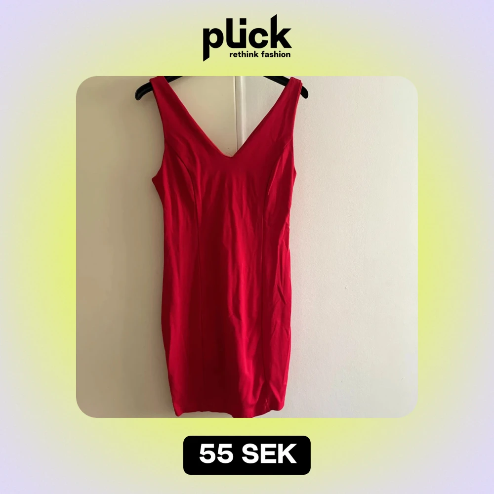 Snygg röd klänning med v-ringning och ärmlös design. Perfekt för festliga tillfällen. Klänningen har en tight passform som framhäver figuren. Den är gjord i ett mjukt och bekvämt material som känns skönt mot huden. En riktig blickfångare för kvällen! 💃
