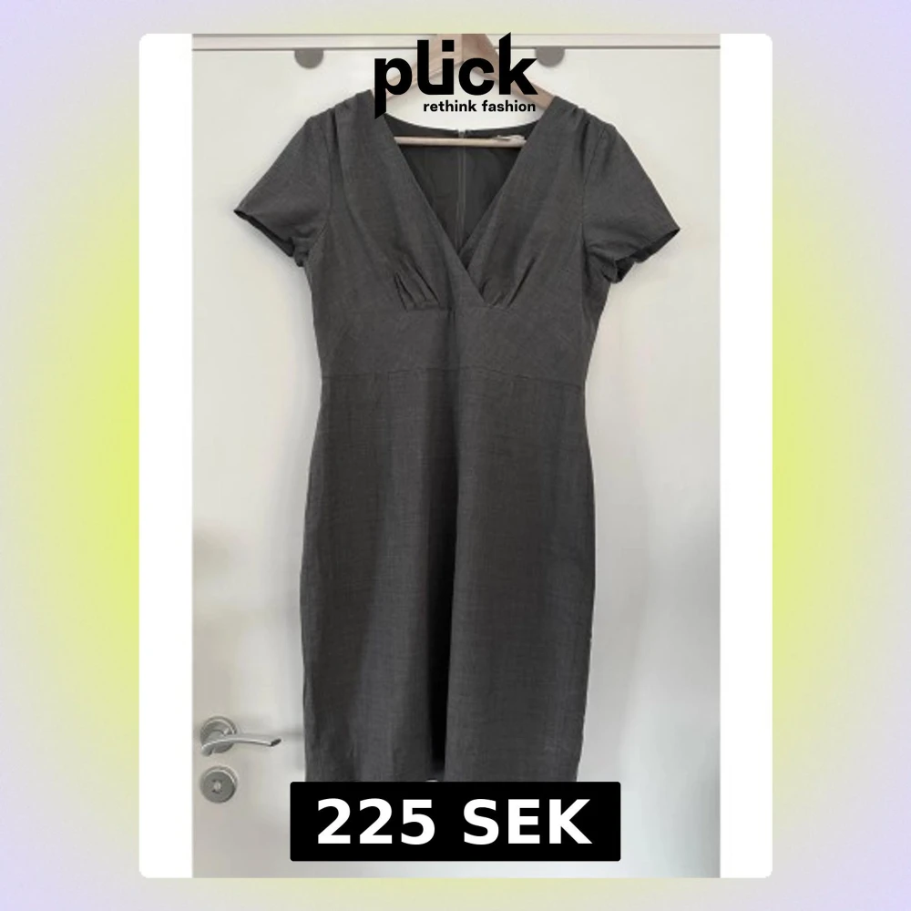 Stilren grå klänning från Banana Republic i storlek L / 40-42 / 10. Klassisk modell med kort ärm och överlappande V-ringning. Dold dragkedja baktill och en slits nedtill för bekväm rörlighet. 95% ull, 5% elastan, så bra material som både andas och anpassar sig till kroppen för bästa passform. Nypris 1850:-. Mycket gott skick, som ny!