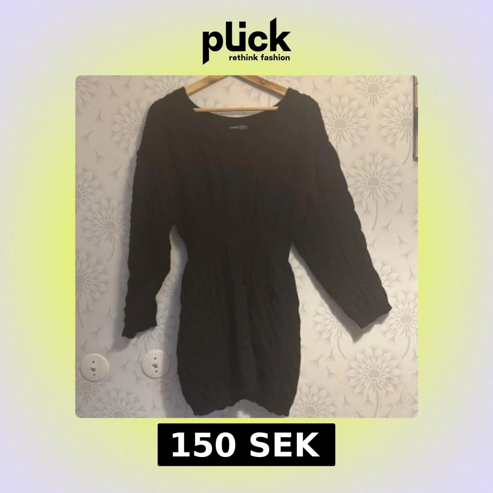 Säljer en svart stickad klänning med långärmad design. Klänningen har en åtsittande passform och är perfekt för kyligare dagar. Den har en enkel och stilren look som passar till många tillfällen.