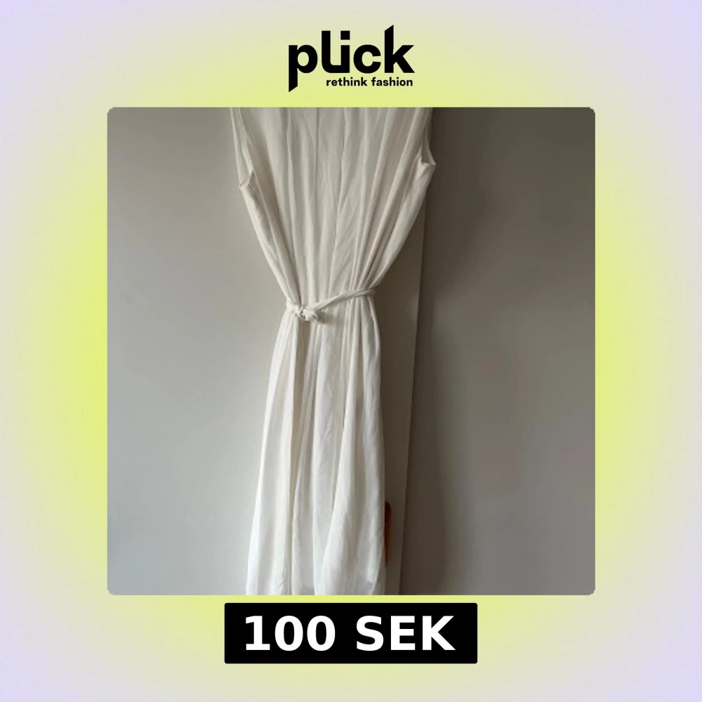 En stilren vit långklänning med ärmlös design och rund halsringning. Klänningen har ett knytband i midjan som ger en snygg siluett. Perfekt för sommarens alla tillfällen.