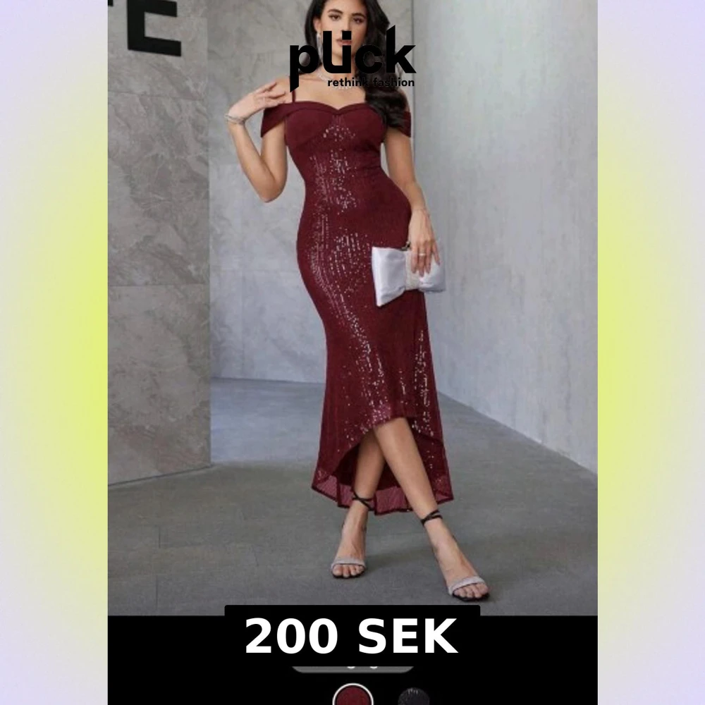 Säljer en vinröd långklänning med glittriga paljetter den är använd 1. Passar perfekt till bal,bröllop eller liknande