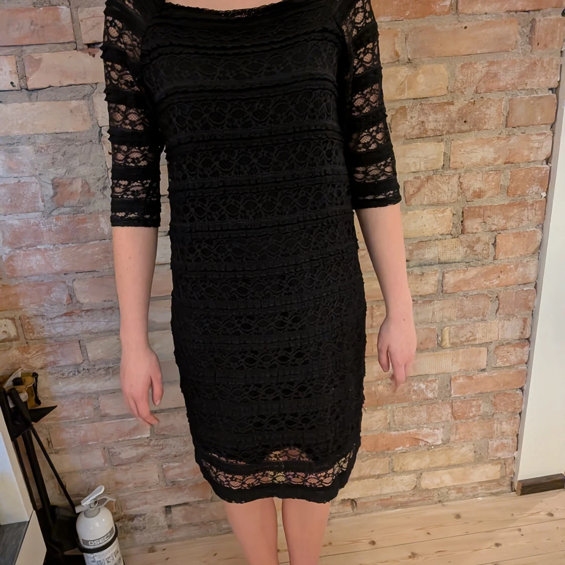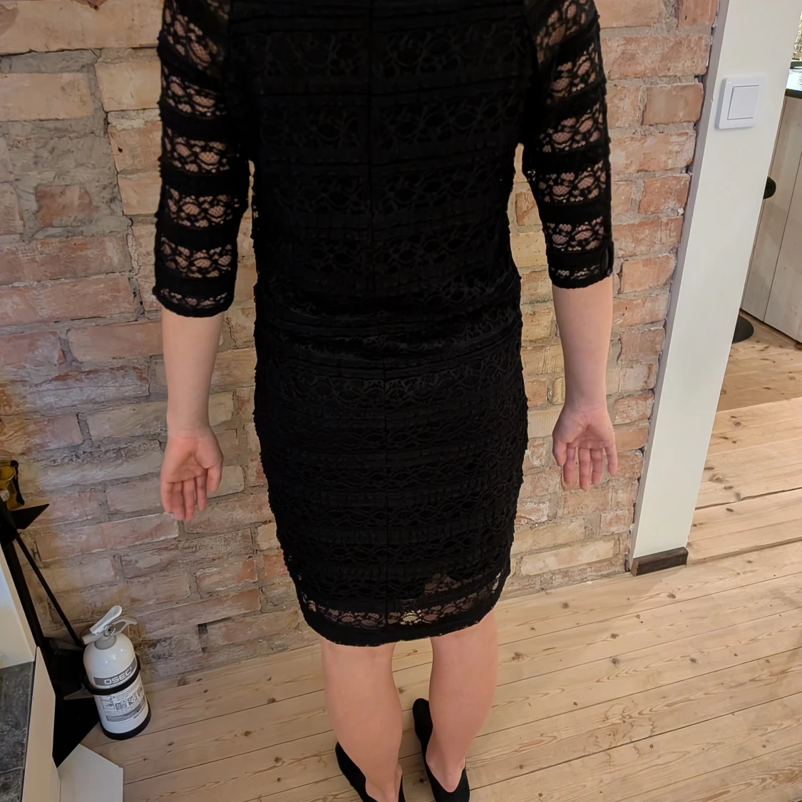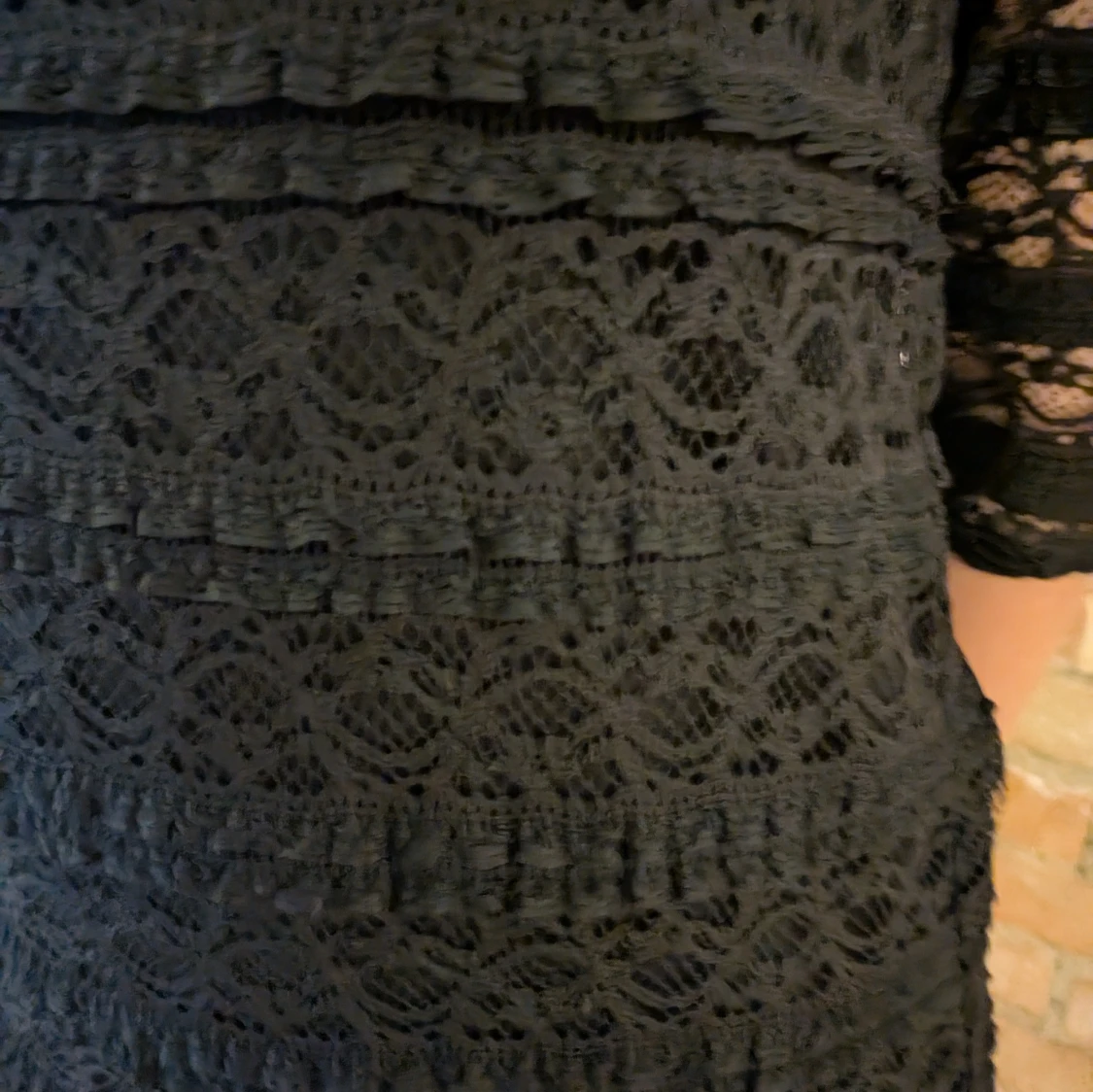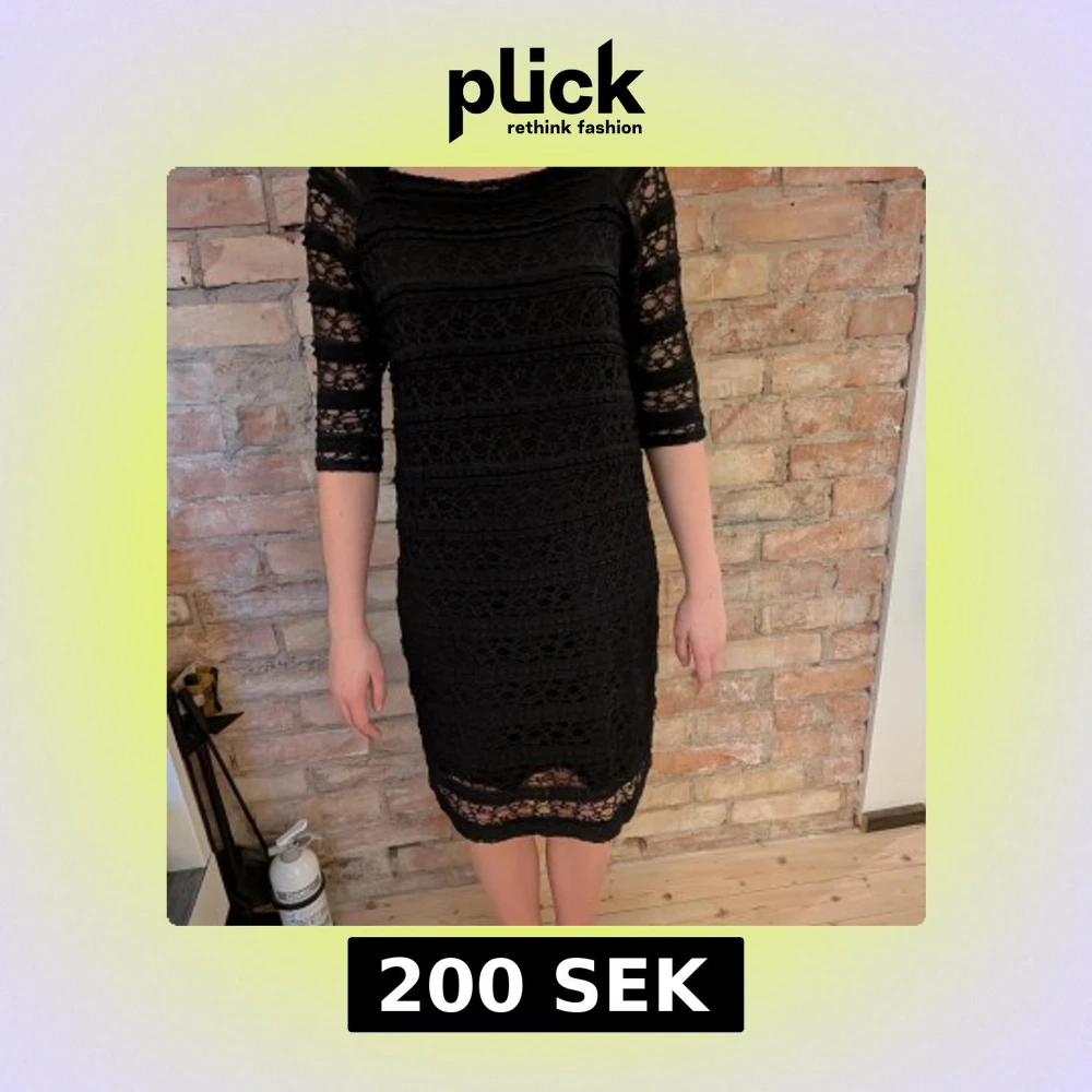 En svart fin klänning med spets som mönster från kappahl. Klänningen är i storlek L men är väldigt stretchig!! Den är i bra skick och är använd några få gånger!!