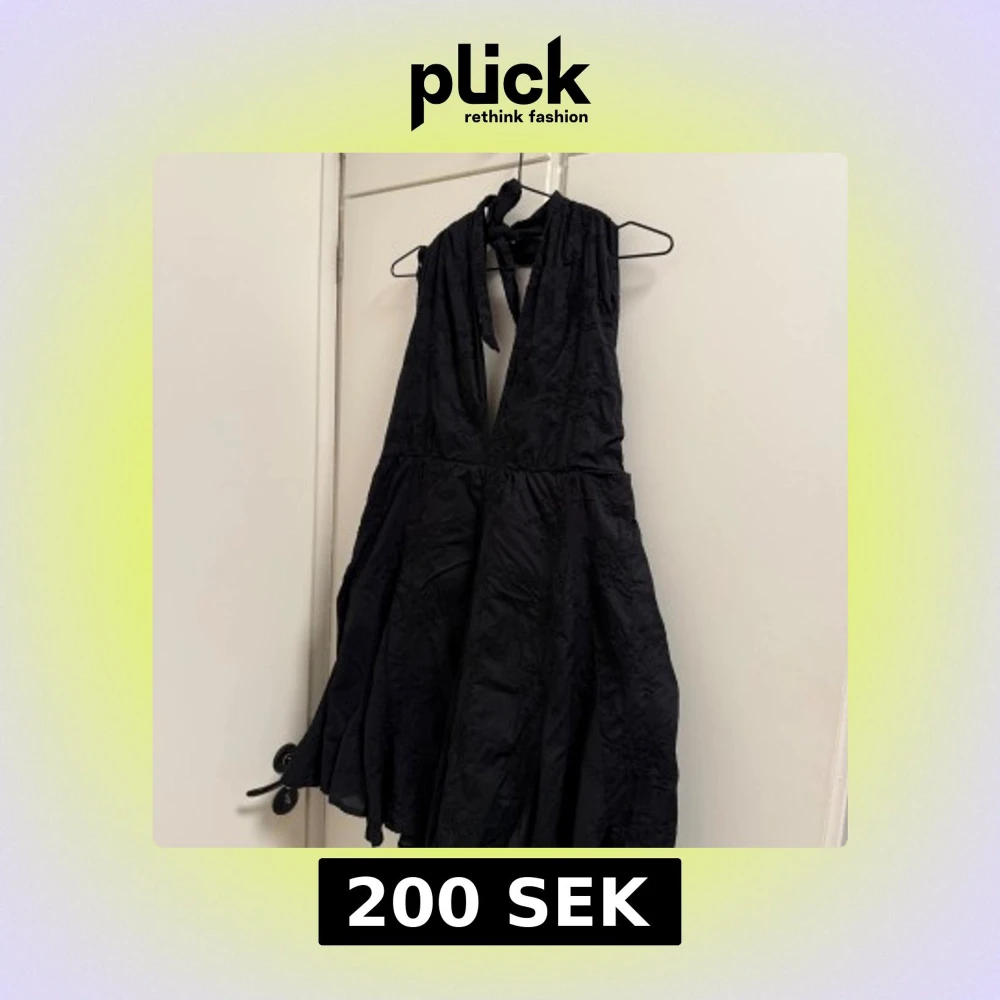 Svart kortklänning med brodyr ifrån bikbok, superfin klänning men dom inte längre används. Knyte i nacken och även i midjan och öppen rygg, storlek L