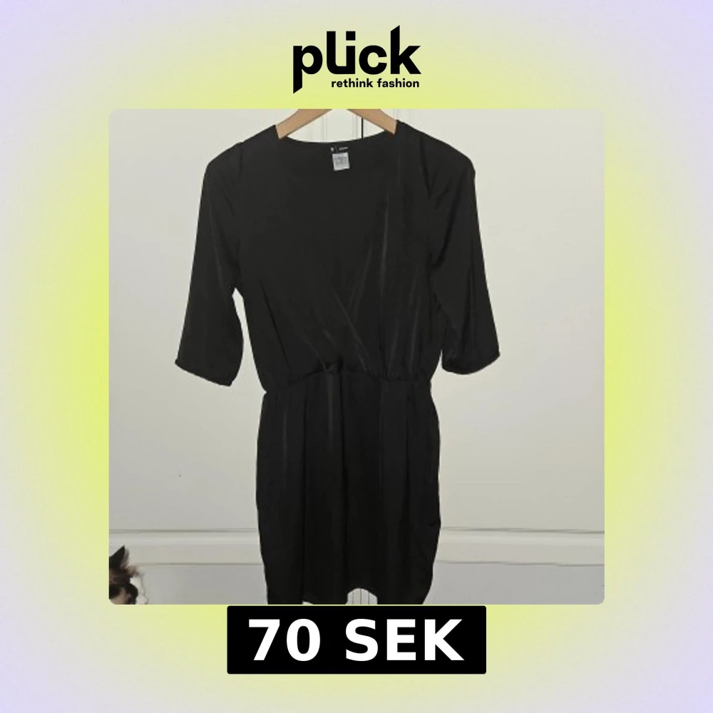 Nyskick Svart klänning/tunika med v-ringning och 3/4 ärmar. Klänningen har en elastisk midja och är gjord av ett mjukt, lätt material. Tyvärr är lappen bortklippt men det är 30° Märket la redoute