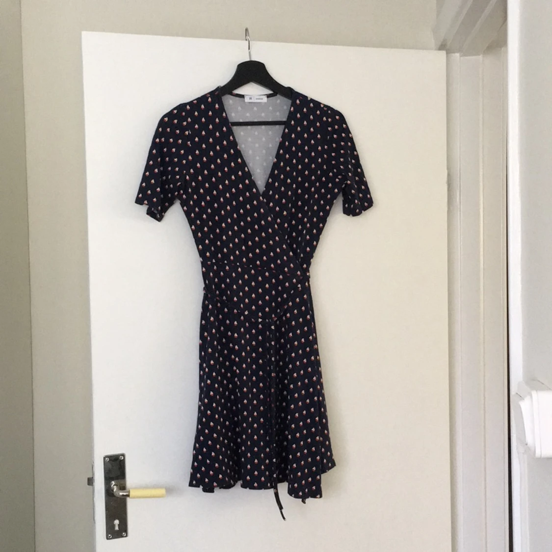 Otroligt söt marinblå omlott klänning med båt mönster från franska märket Laredoute. Strechig material. Endast tvättat. Fransk strorlek M motsvarar svensk strl S.