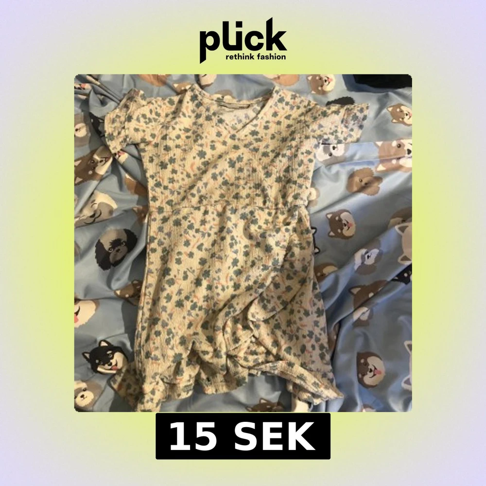 Supersöt kortklänning från 157 med ljusblått och rosa blommönster på beige botten. Klänningen har v-ringning, korta ärmar och volangkant nedtill. Materialet är mjukt och ribbat, perfekt för vår och sommar. Passar dig som gillar gulliga och bekväma outfits!