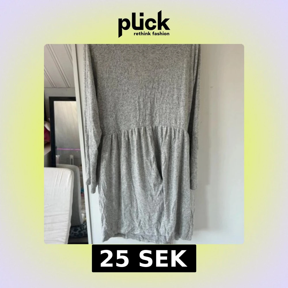 Mysig gråmelerad klänning med lång ärm och avslappnad passform. Klänningen har en rynkad midja som ger en skön och luftig känsla. Materialet är mjukt och stretchigt, perfekt för chill dagar. Enkel design utan synliga detaljer som knappar eller dragkedja.