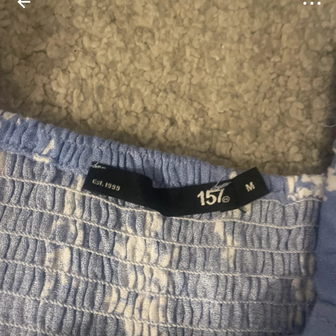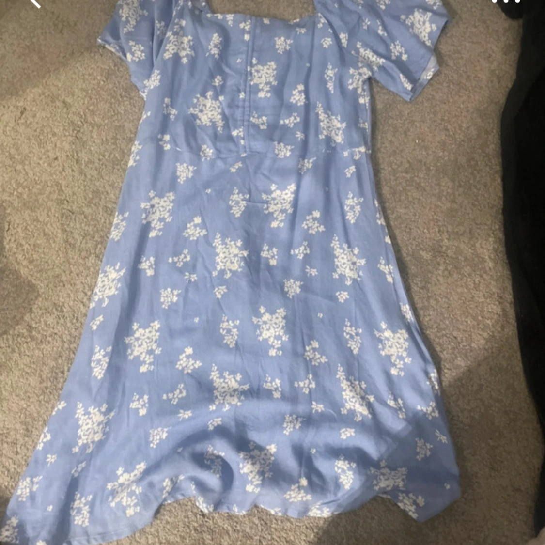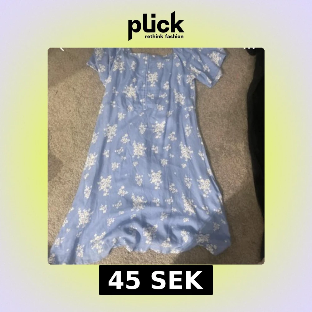 Supersöt ljusblå klänning från 157 med vita blommor, kort ärm och smockad rygg. Klänningen har en lätt utställd form och knappar framtill. Perfekt för sommarens alla tillfällen!
