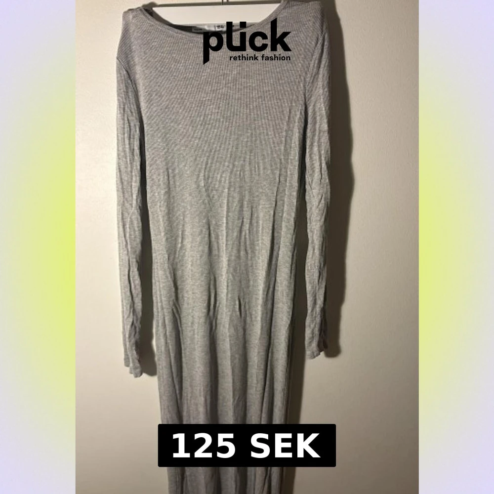 Långärmad grå långklänning från 157 i ribbad bomullsmix. Klänningen har rund halsringning och en figurnära passform som följer kroppen. Perfekt för dig som gillar en enkel och stilren look.
