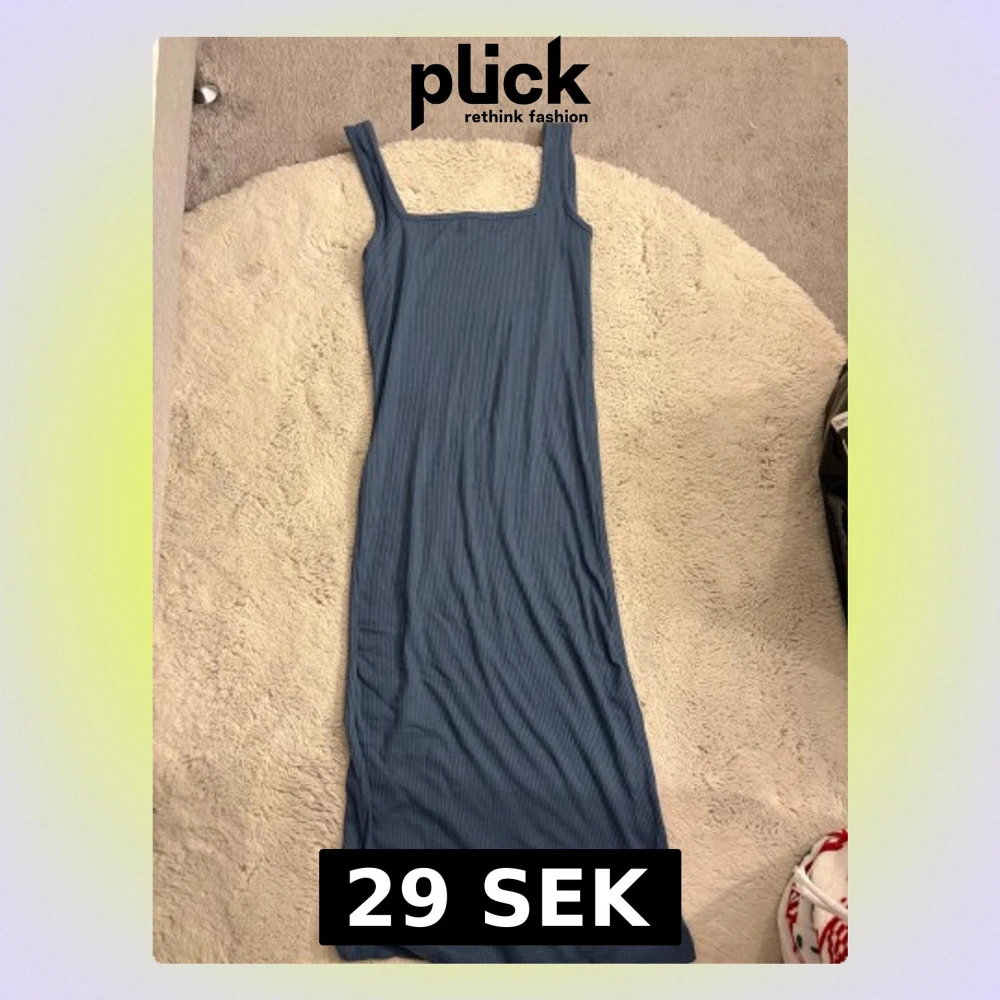 Säljer en blå ribbad långklänning från 157 med breda axelband och fyrkantig ringning. Klänningen är figurnära och har en enkel, stilren design som passar perfekt till sommaren. Materialet är mjukt och stretchigt för en bekväm känsla.