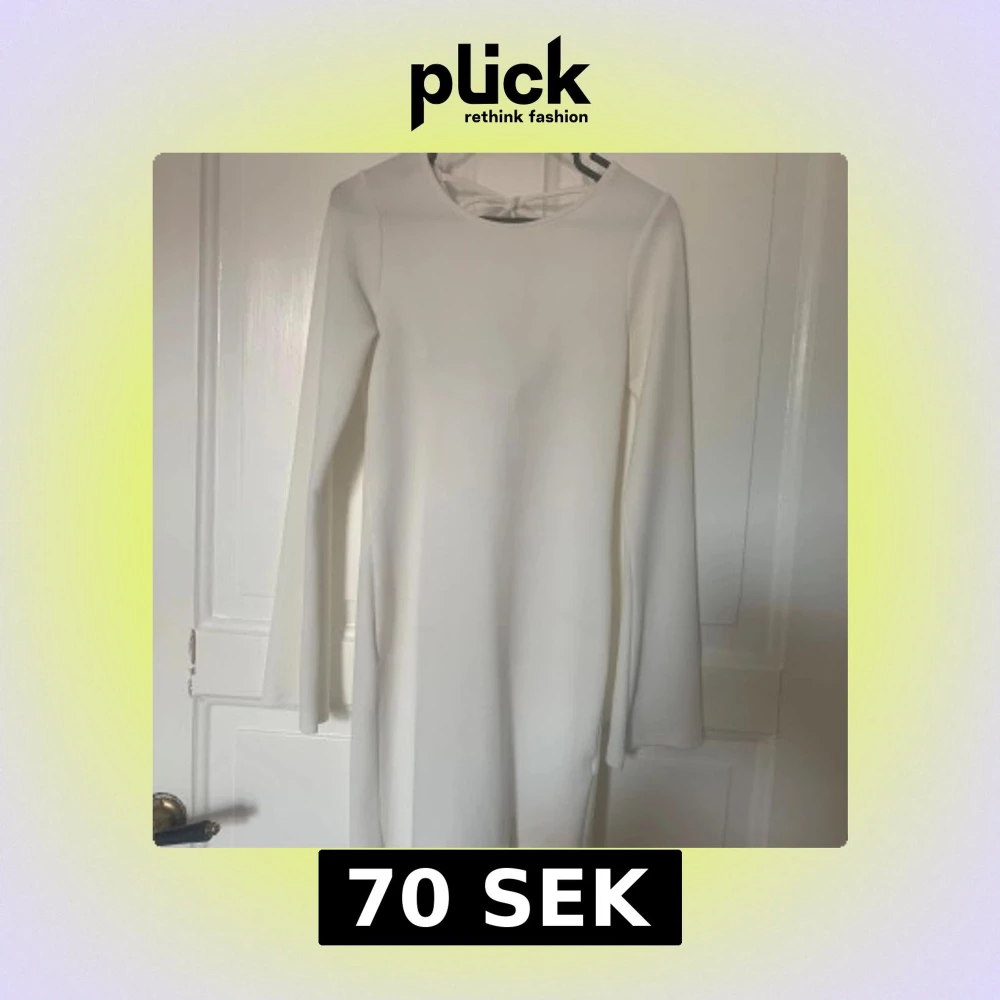 Stilren vit klänning med långa ärmar och snygg draperad ryggdetalj med knytband. Klänningen har en rak passform och är tillverkad i ett mjukt, lätt strukturerat material. Perfekt för dig som gillar minimalistisk och elegant stil. Köparen betalar frakt