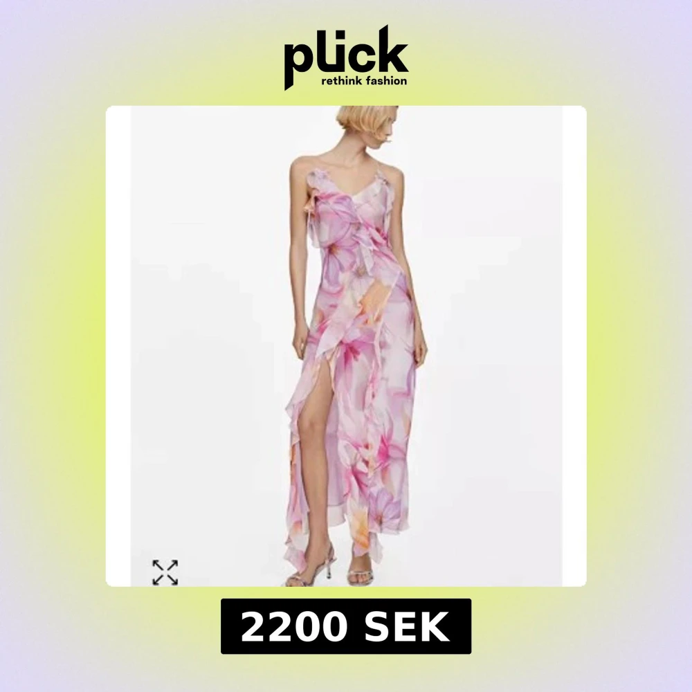 Kanske din balklänning? Helt slutsåld Superfin långklänning från Mango i ett tunt, flowy material med stora blommor i rosa, lila och orange toner. Klänningen har volangdetaljer, slits framtill, smala axelband och öppen rygg med knyt. Perfekt för sommarens alla tillfällen!