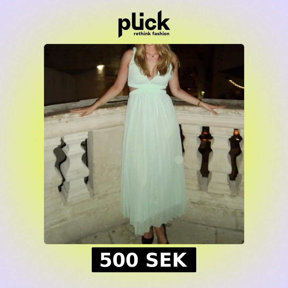 Ljus turkos lång klänning med öppen rygg! Den är lätt refflad i kjol delen, jag är 170 cm lång