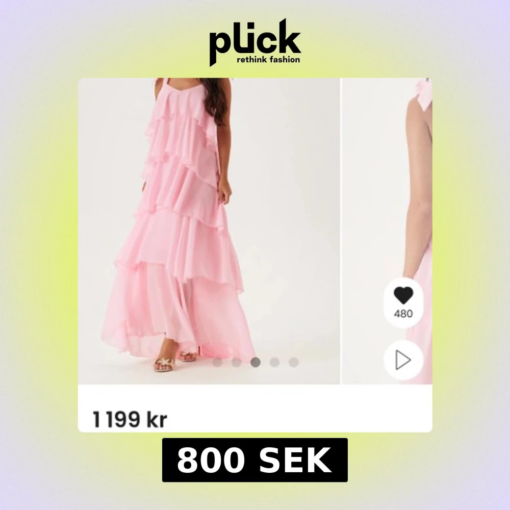 En lång ljusrosa volangklänning med knytband💗
