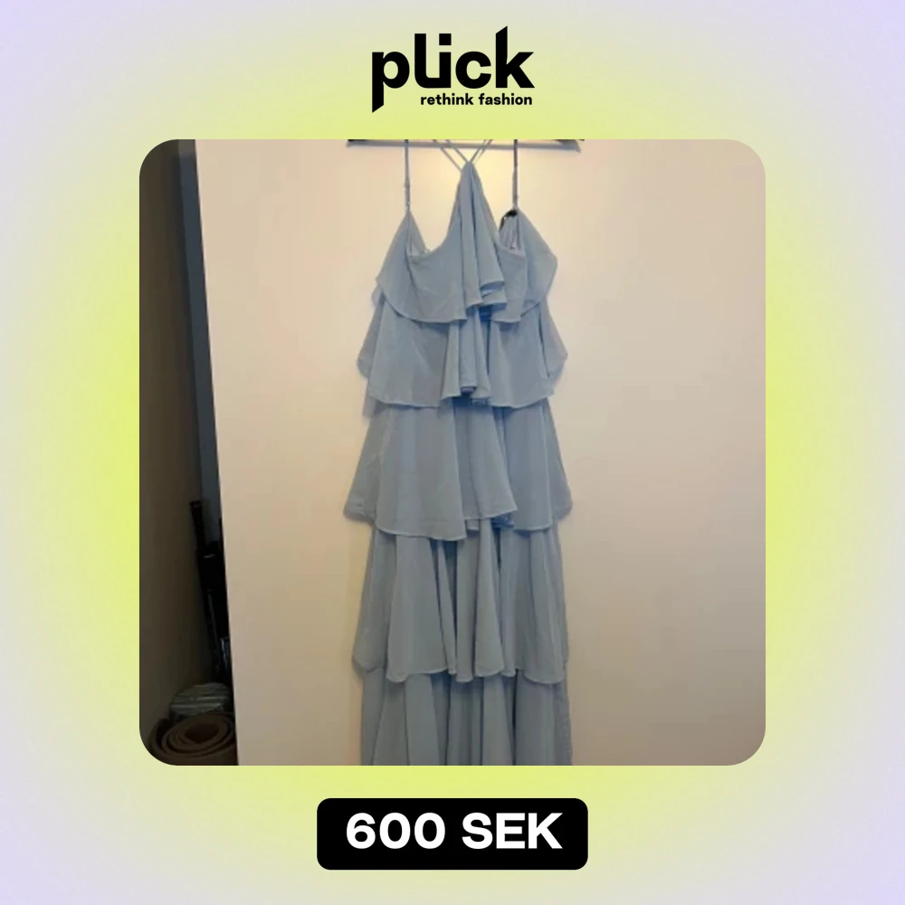 Blå lång klänning med volanger från Gina tricot. Använd 1 gång.