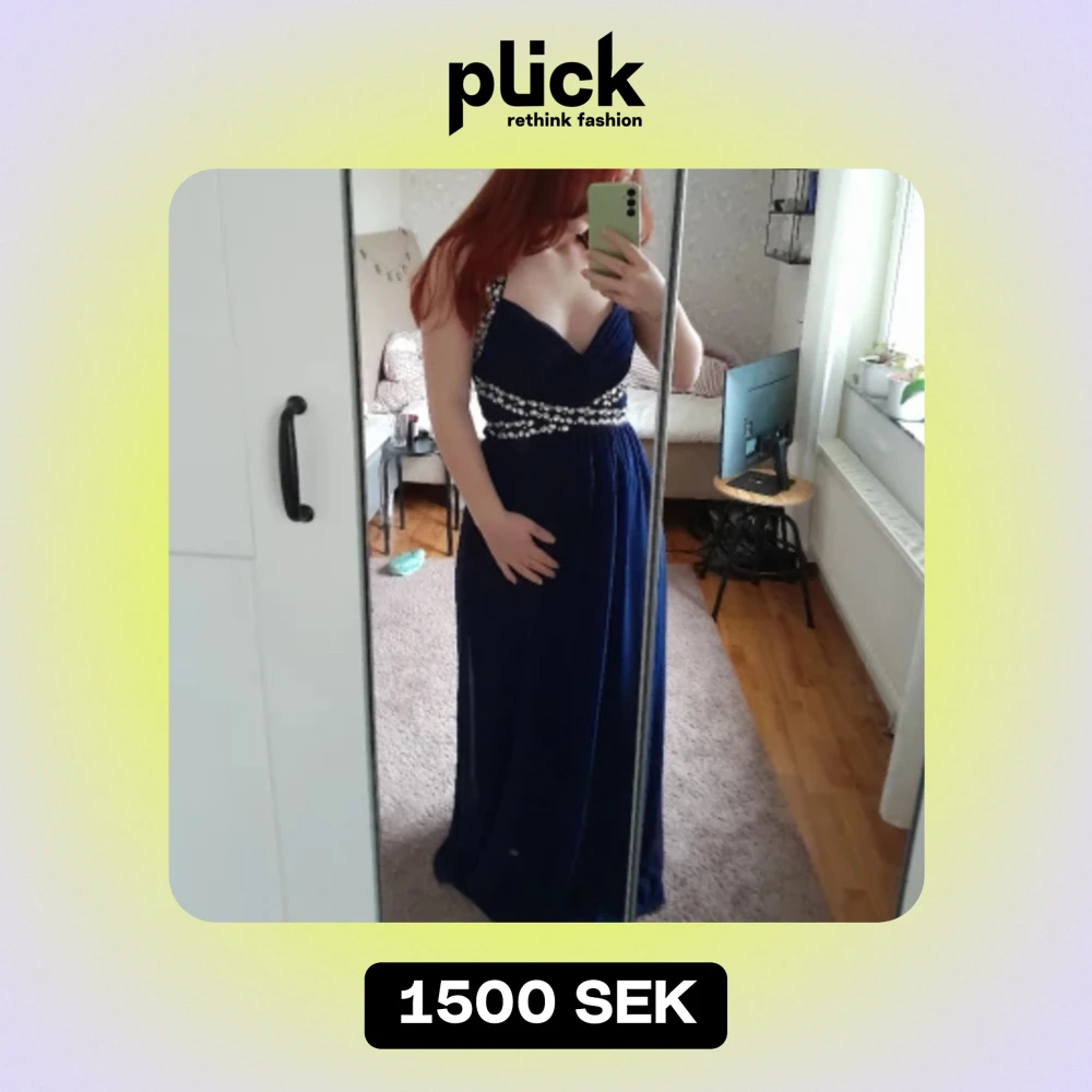 Säljer denna fina marinblåa klänning då den ej kommer till användning. Är använd vid 2 tillfällen. Knyts bak i nacken