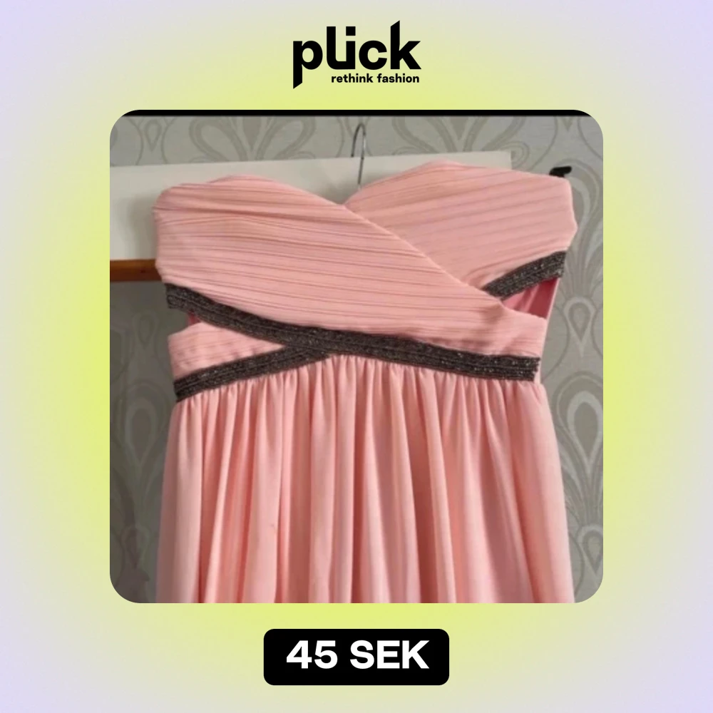 Lång klänning utsmyckning framme, med underkjol och slits från Gina T. Använd en gång men inga anmärkningar Jätte snygg och smickrande på kroppen