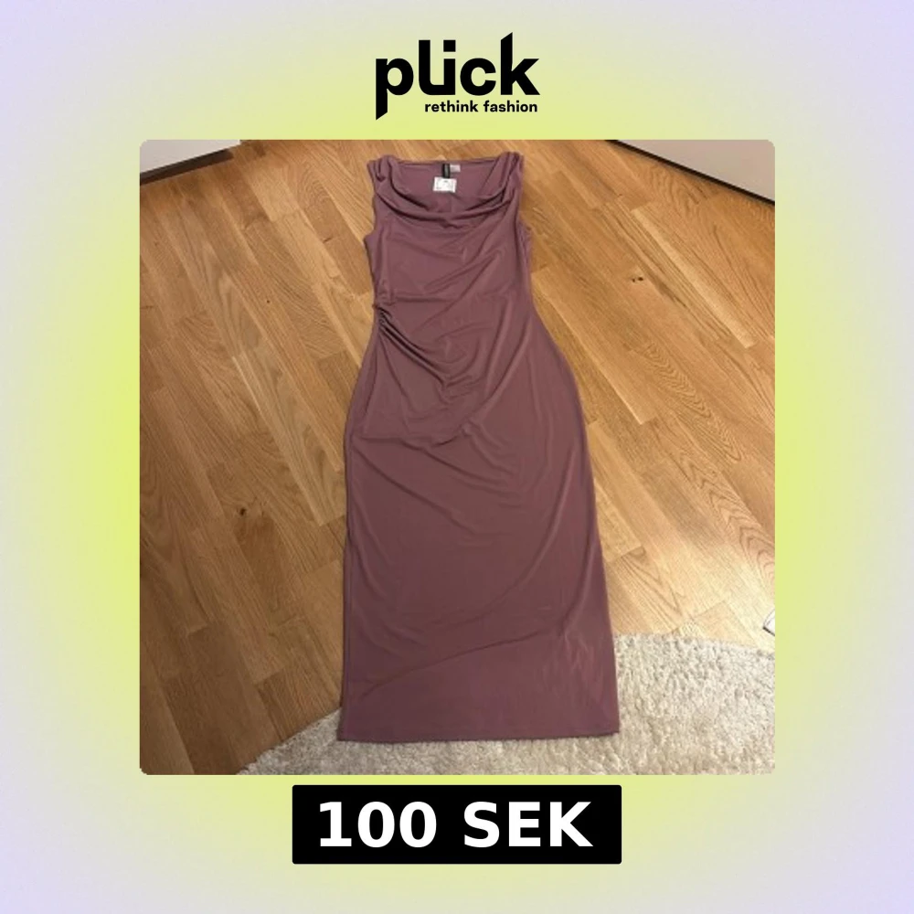 Säljer en lång, ärmlös klänning i en mjuk lila nyans från H&M Divided. Klänningen har en draperad halsringning (boatneck) och är figurnära med en stilren, minimalistisk look. Perfekt för dig som gillar enkel men snygg design. Helt oanvänd!!!