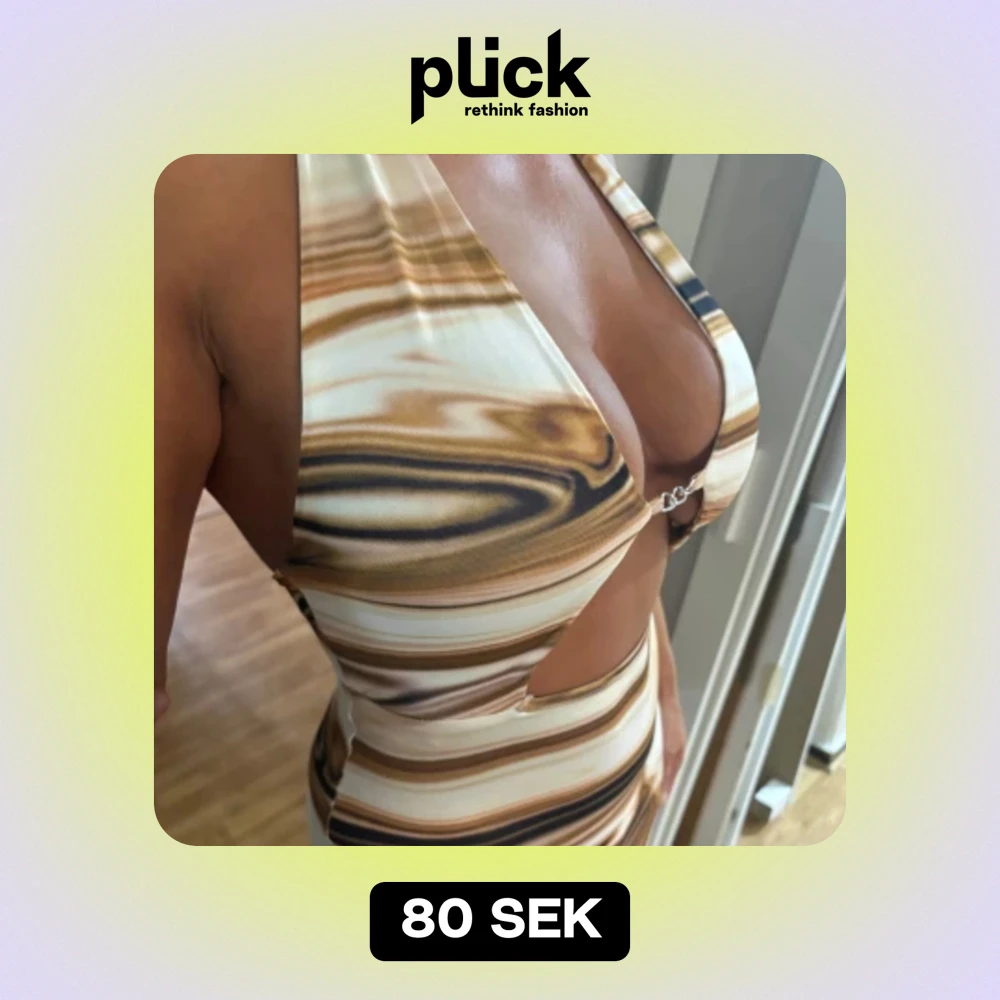 En jääätte snygg marmor mönstrad klänning med flera detaljer! Har öppen rygg och är utan ärmar!🧸👏🏽Klänningen är i storlek xs men passar s också🤩
