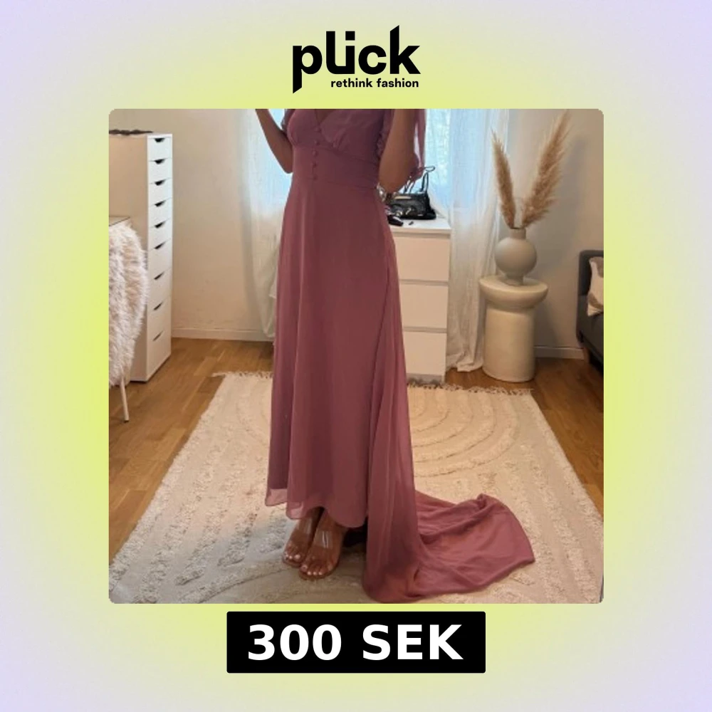 Säljer en lång rosa klänning från Nelly som är helt oanvänd.. S/XS
