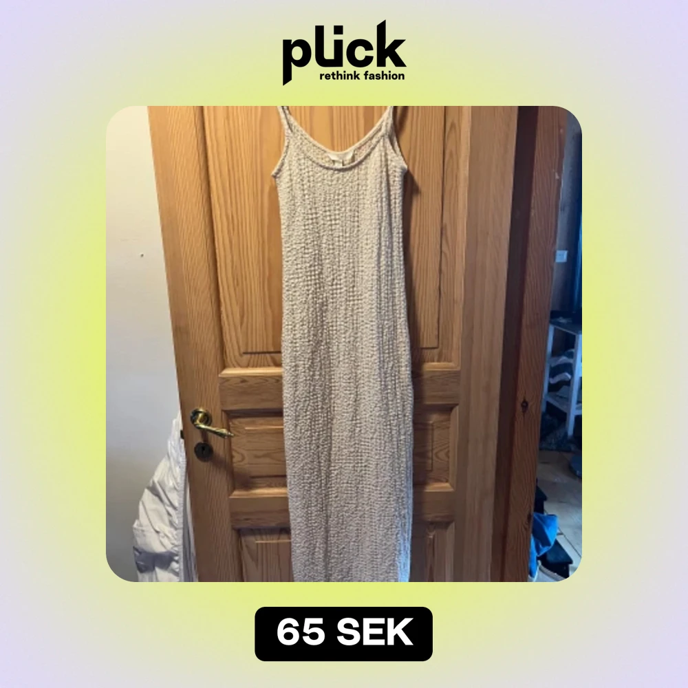 Beige sommarklänning från Hm. Går ner till mitten av ankeln på mig (178 cm) Testad men aldrig använd ute