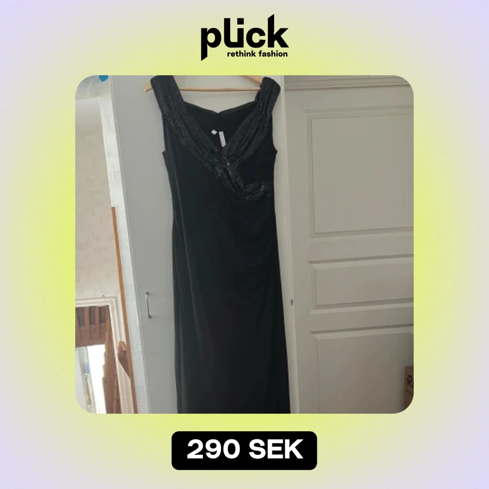 En lång svart festklänning med paljetter, har används endast 1 gång! Nypris: 500kr