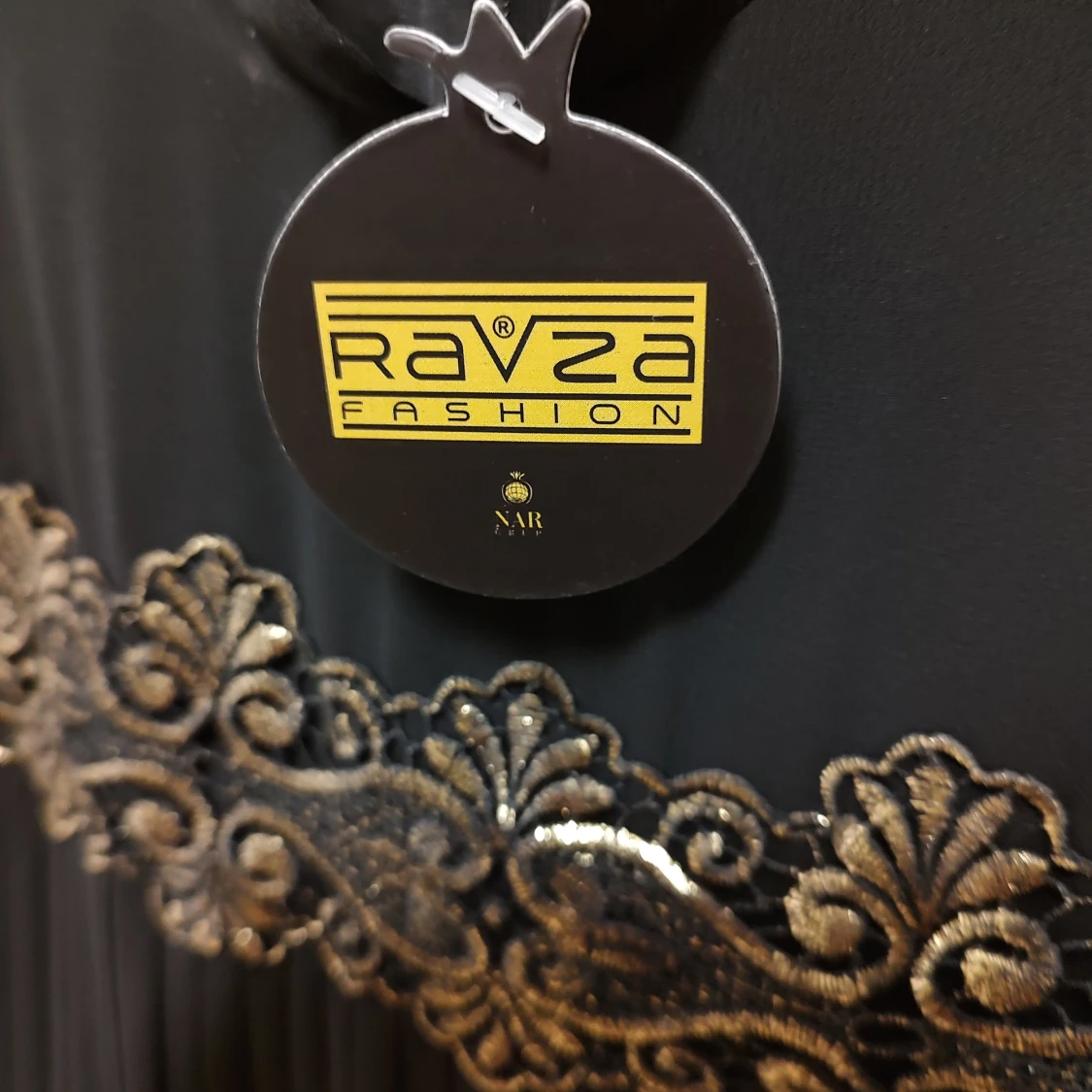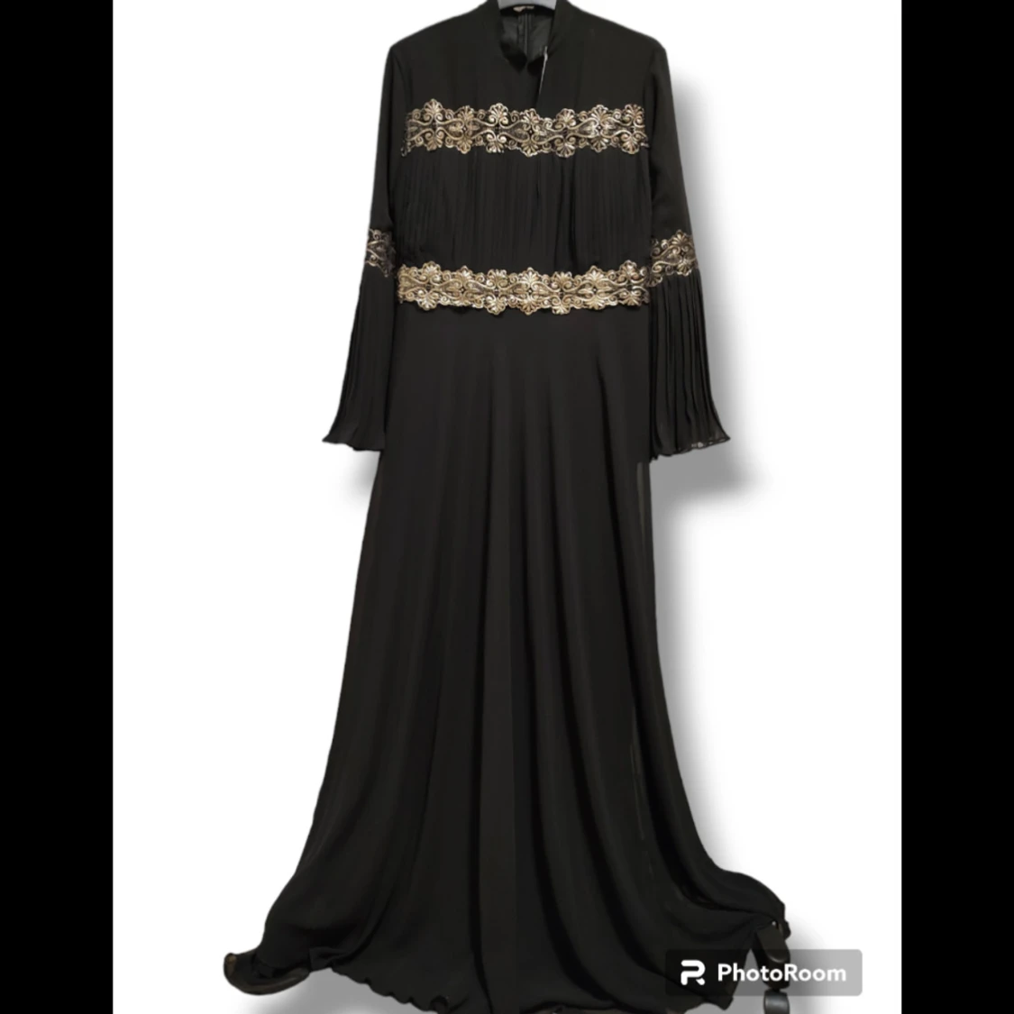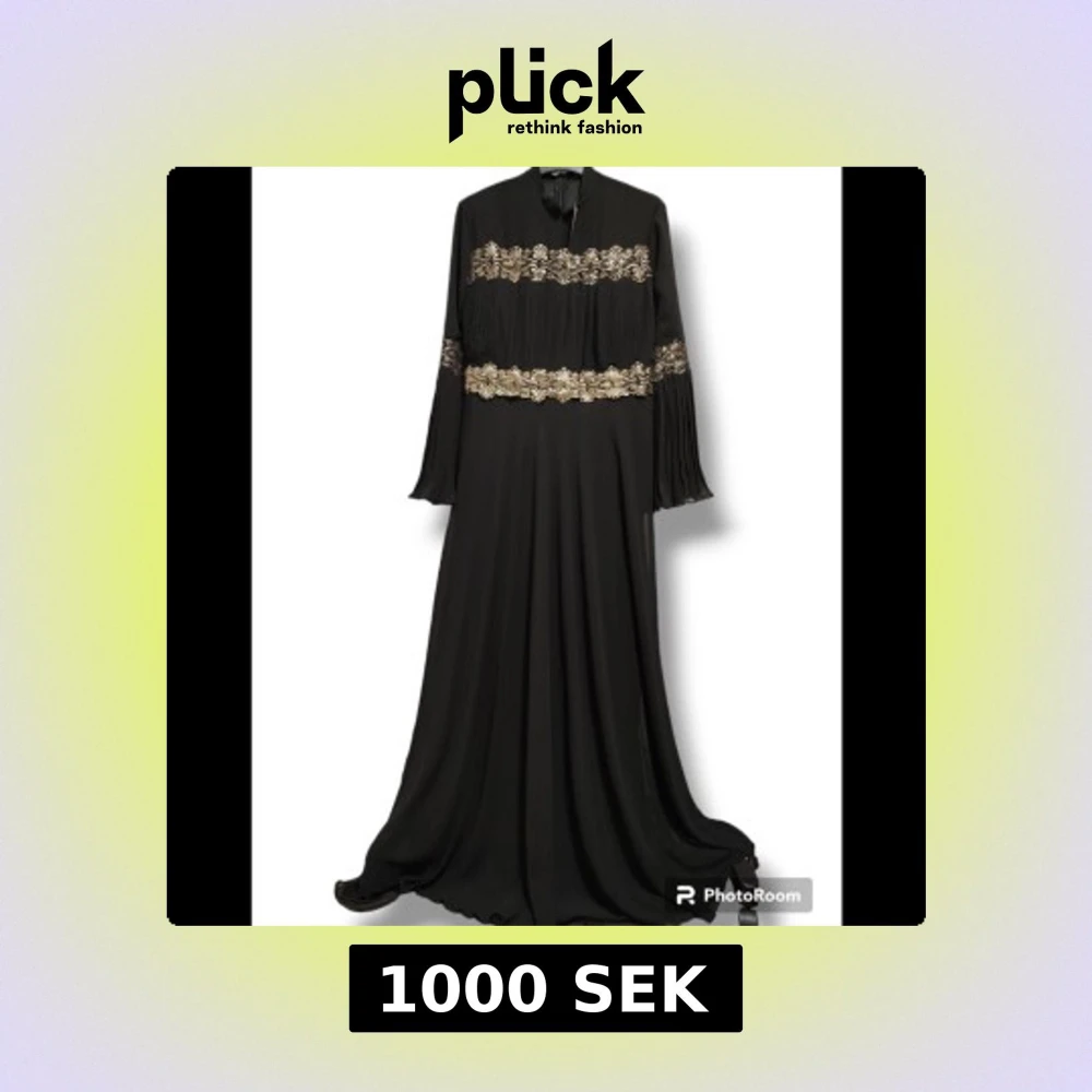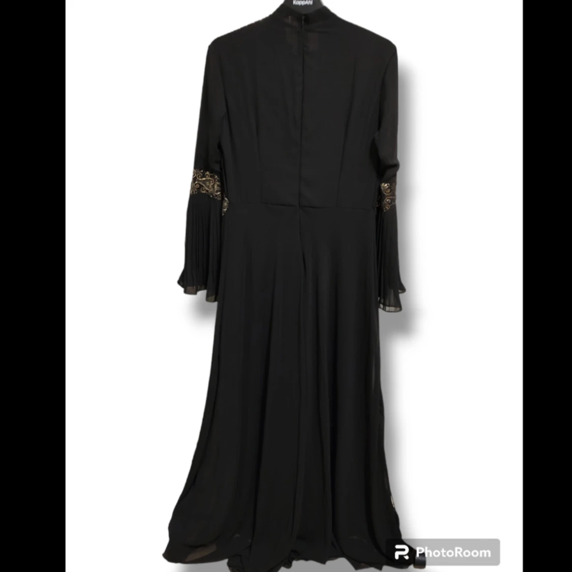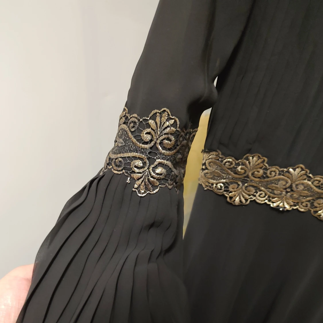 Festklänning med långa armar och mönsterdetaljer i guld färg Oanvänd