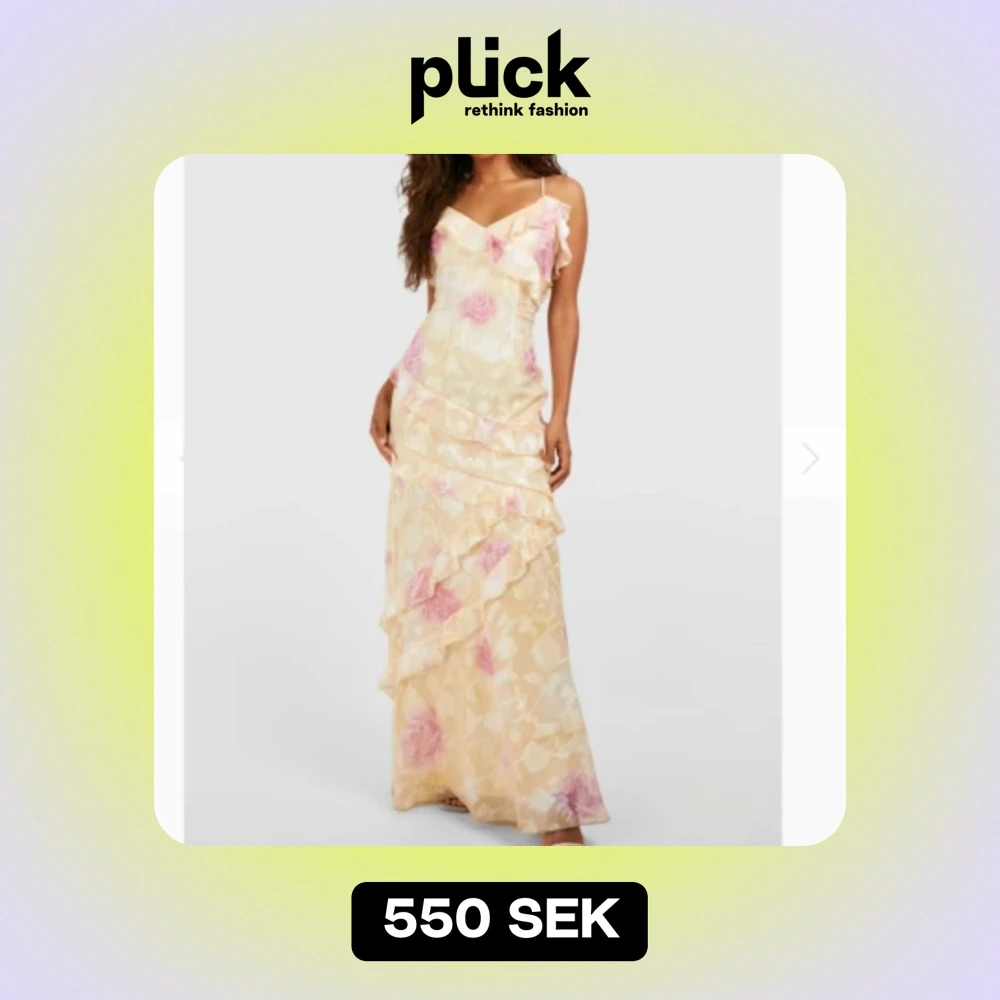 Säljer denna fina gula långklänningen med volanger från boohoo😍den är i storlek 38 men skulle säga att den även passar en 36! Den är i ny skick med prislappen kvar, ny pris 745kr, slut såld i både stl 38, 40, 46💛pris kan diskuteras vid snabb affär😊