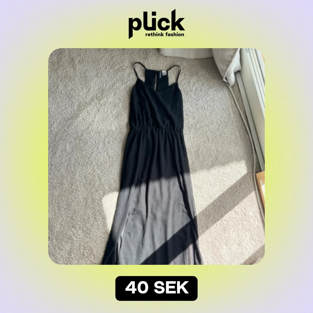 Svart långklänning från H&M. Slits längst ner på båda sidorna och en liten öppning i ryggen. Stl XS