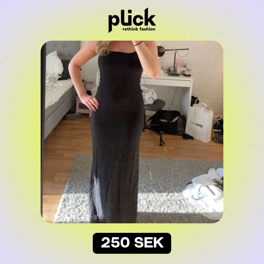 Superfin svart långklänning från Nelly🤍slits i bak! Säljer pga annat material än jag trodde (se bild 2)
