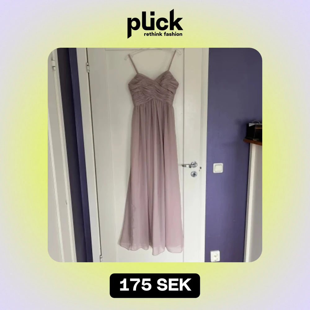 Så så fin lång klänning i en gammaldags rosa-lila färg 💕 perfekt till bal eller liknande 🫶🏻använd en gång så i fint skick! Har dock en liten tråddragning (se sista bild) som knappt syns, ens på nära håll. Justerbara band! Hör gärna av dig vid frågor❣️