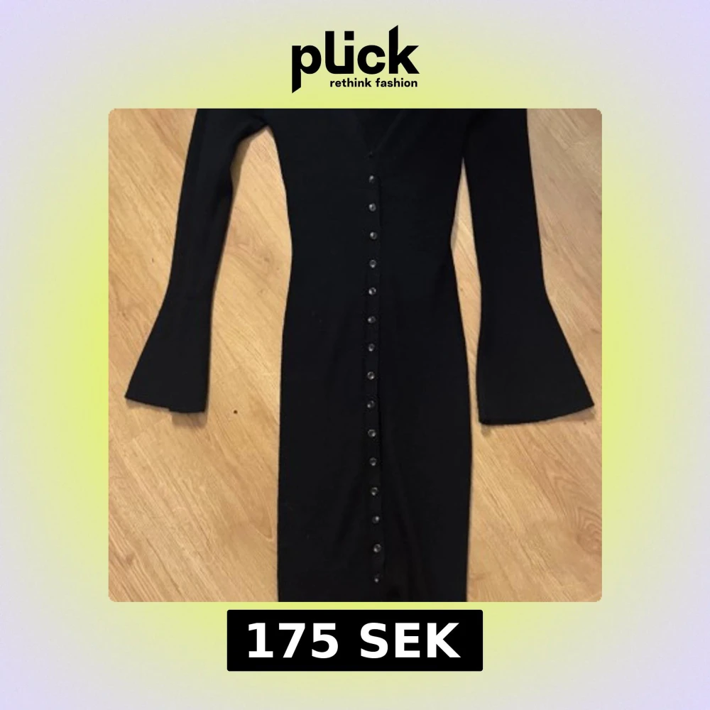 Svart långärmad klänning med utsvängda ärmar och knappar