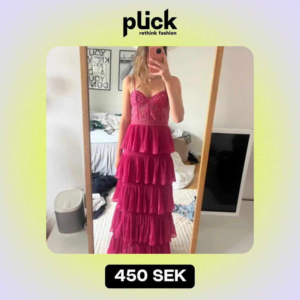 Säljer denna superfina långklänning från bohoo som aldrig är använd där av lapparna kvar klänningen är slutsåld och är i storlek 38 men passar mig med S/M i vanliga fall den går nästan hela vägen på mig som är 173 cm💕