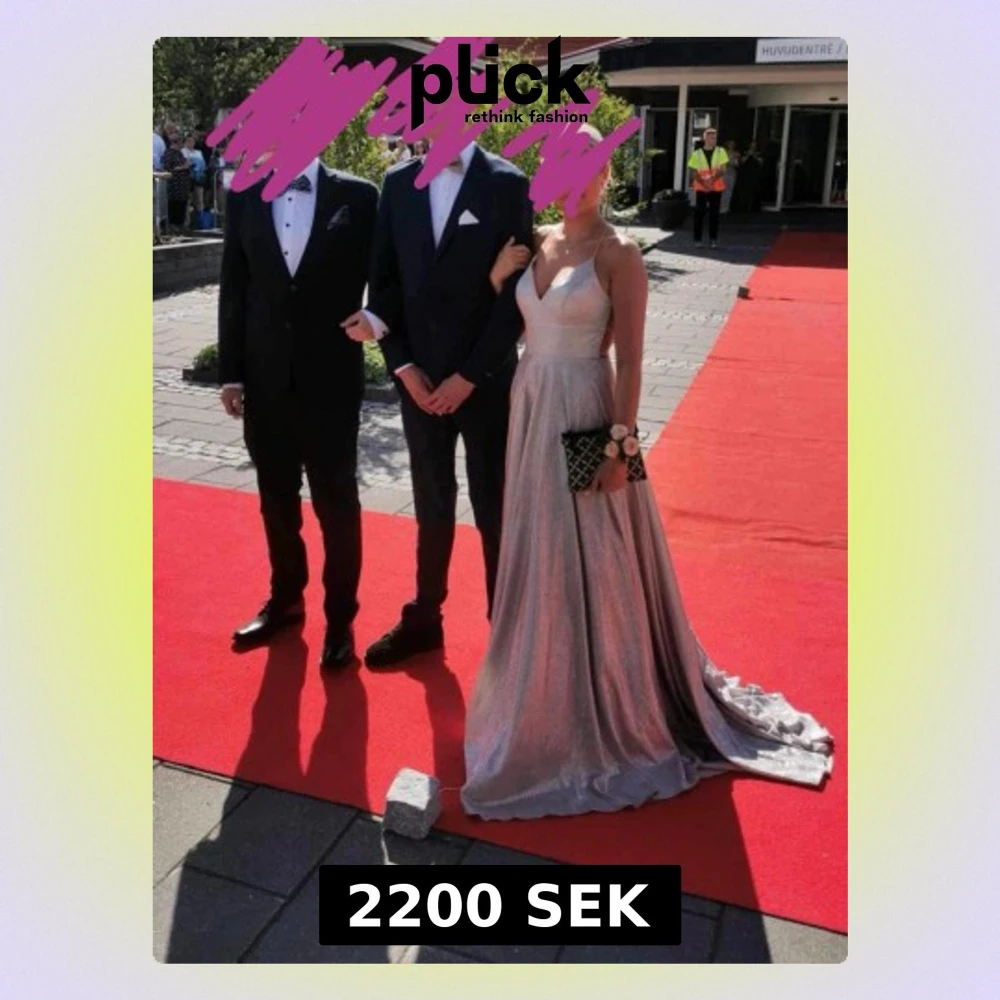 Lång balklänning i champagne/silver med glitter, långt ”släp” och snörning i ryggen. Glittrar väldigt fint i solen!! Köpt på dressroom i Göteborg för 4080 kronor (4800 med 720 kr rabatt). Kvitto finns kvar. Står att det är storlek 2? Men passade mig som är strl xs/s. (Den går att spänna åt eller ut med hjälp av snörningen). Använd en gång❤️Pris kan självklart diskuteras