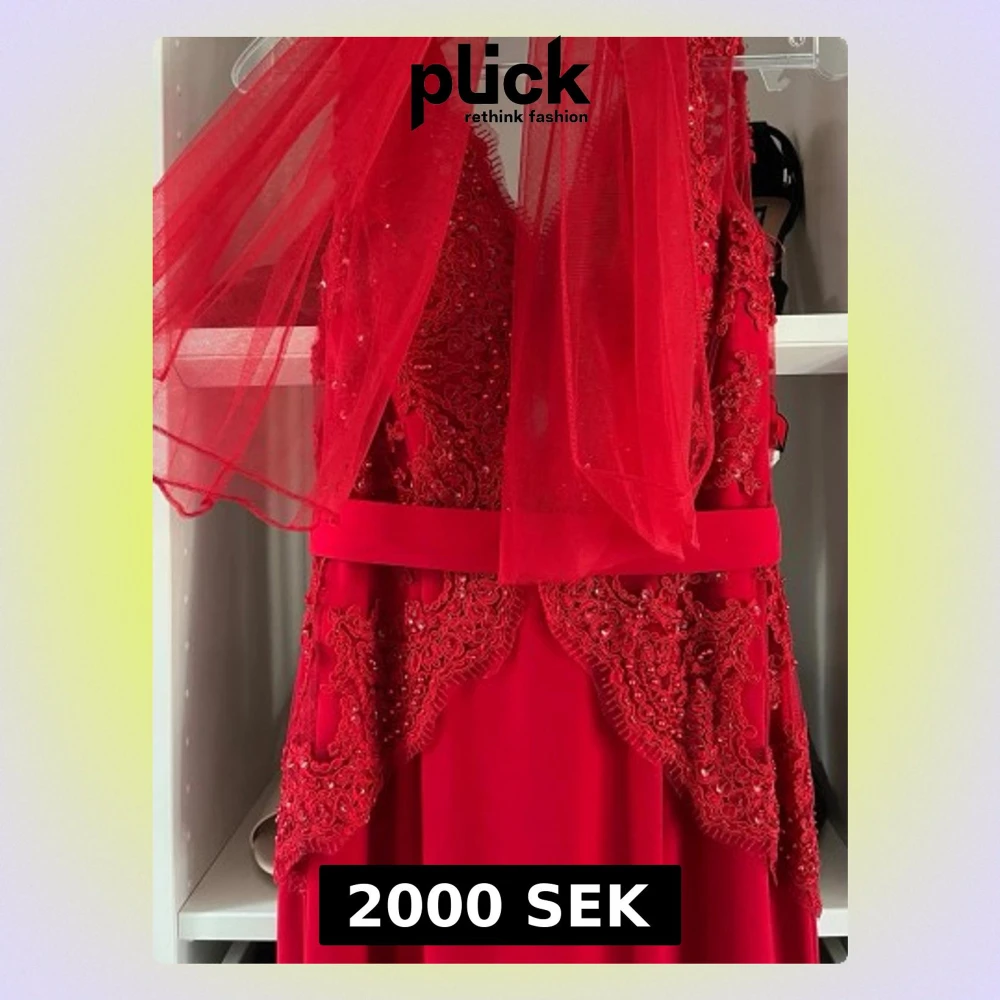 Elegant röd långklänning från Rever Design med spetsdetaljer, pärlor och broderier. Klänningen har ett matchande rött bälte i midjan och ett lager av tunn tyll upptill (man kan använda tyllen som en sjal). Perfekt för dig som vill sticka ut med en glamorös look. NYPRIS 2500