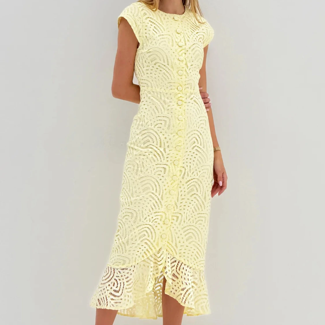 Somrig gul långklänning från vita grace med knappar. Tyvärr liten i storleken (xxs)
