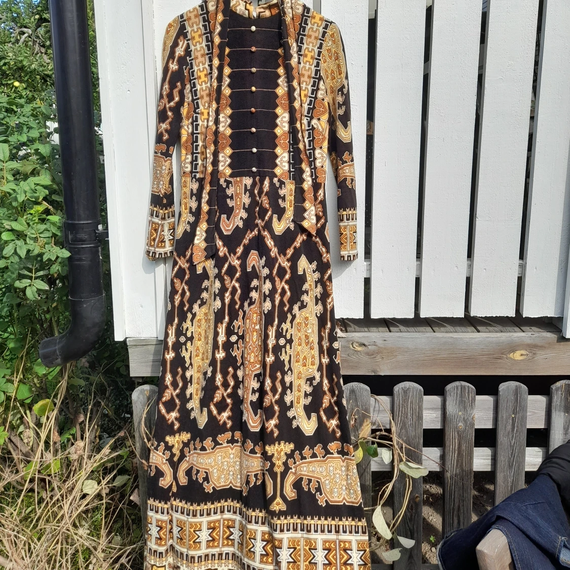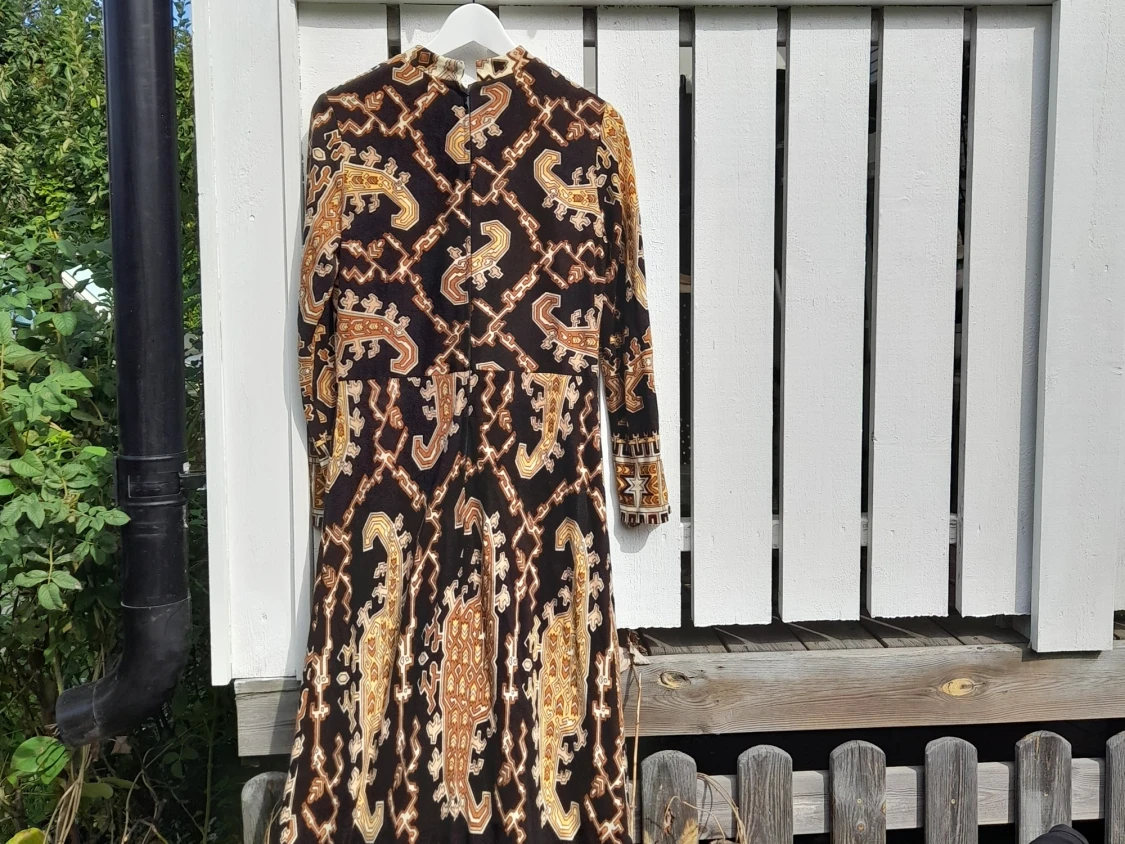 Klänning som går ner ända till fötterna. Spännande material och klänning med band för midjan. Älskar den men använder nästan aldrig.