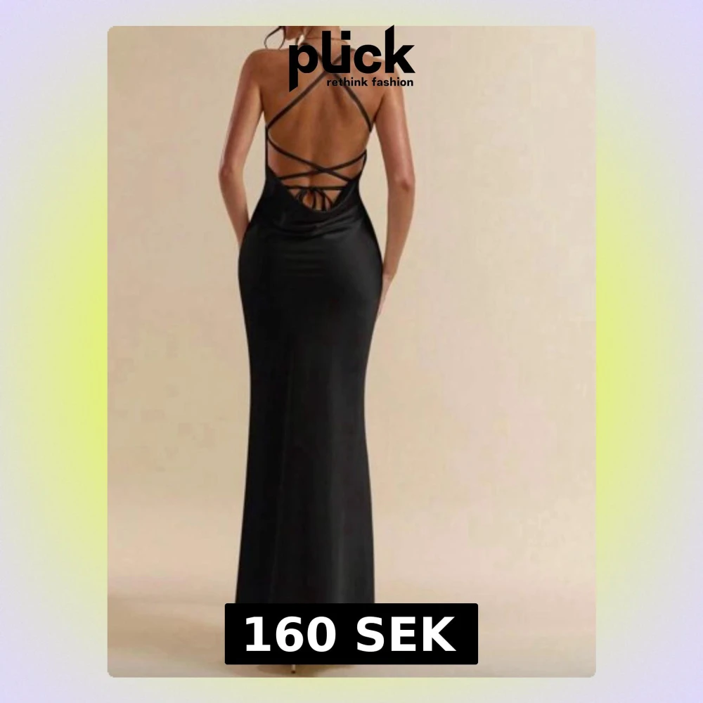 Superfin svart satinklänning med öppen rygg. Storlek xs. Nyskick🩷