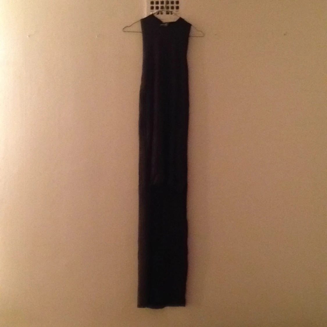 Svart asymmetrisk långklänning (lång bak och kort fram) från weekday. Hög urringning. Sparsamt använd.