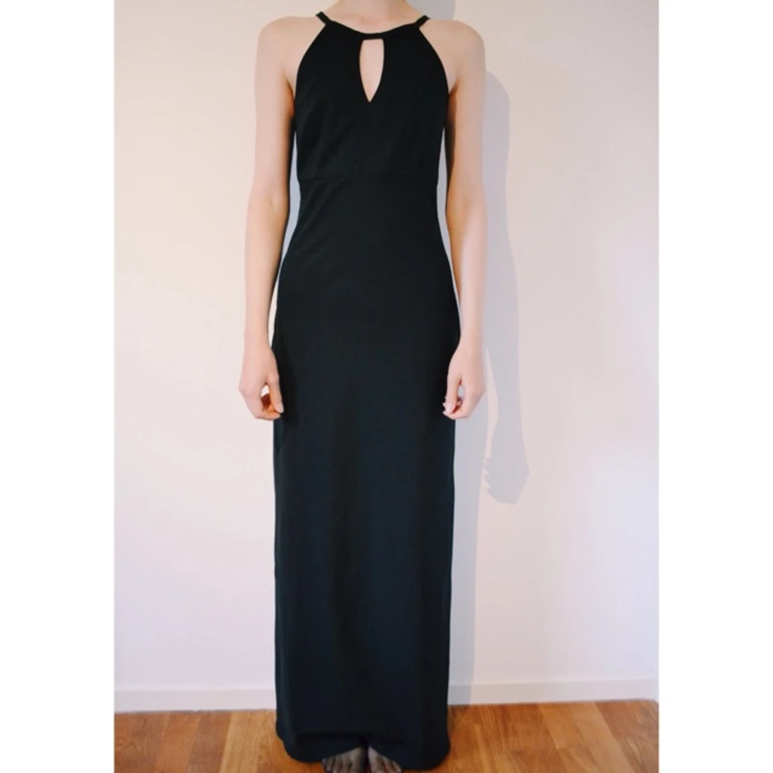 Vintage långklänning med fin hals och rygg, slits på sidan, lite stretch i tyget, storlek 36.