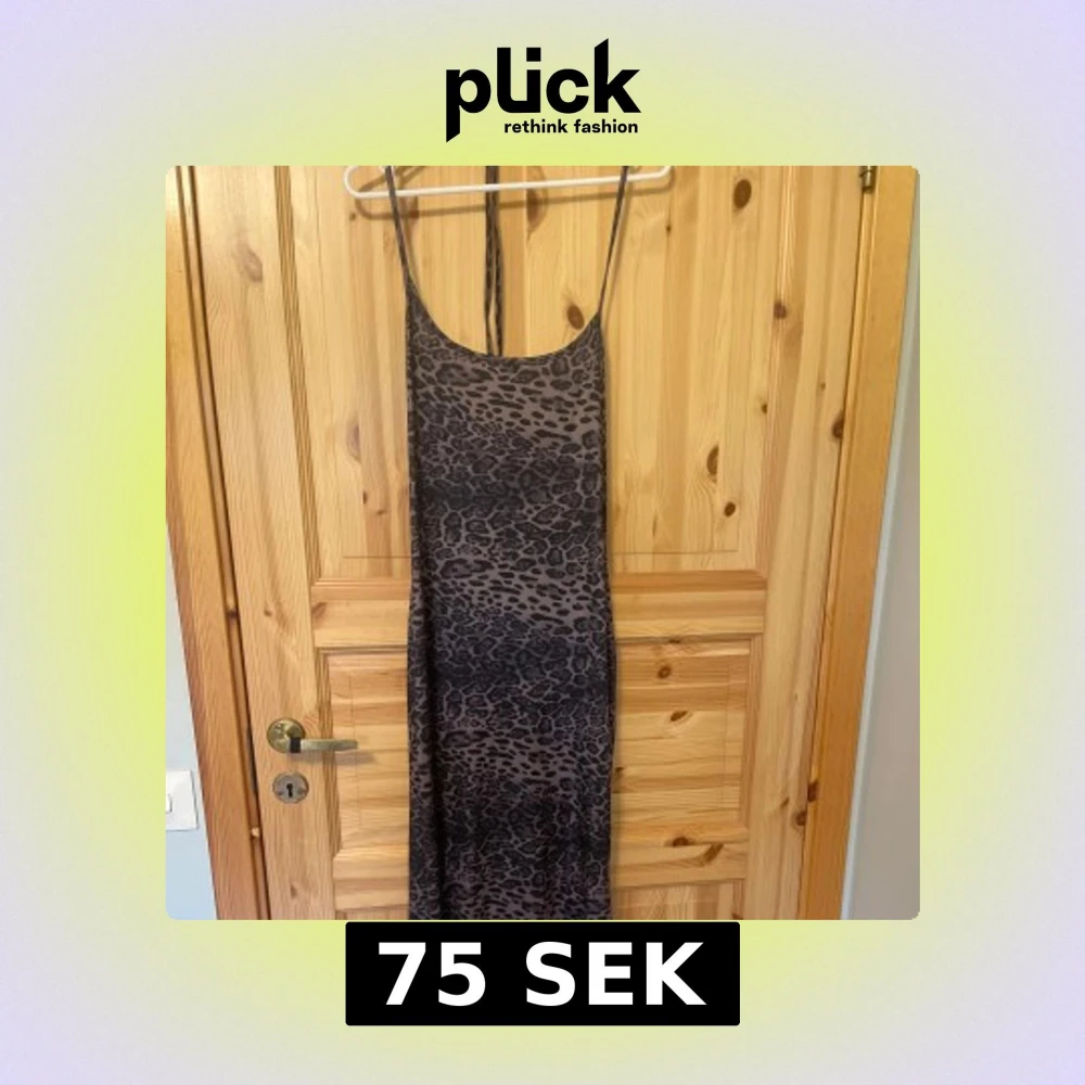 En leopard klänning från SHEIN, andvänd 3 gånger men i bra skick, klänningen är lite öppen i ryggen och knyts vid nacken. Det finns inga synliga fläckar eller skador enligt mig , klänningen kan också vikas och användas som lång kjol. Köpte för 100kr på SHEIN.