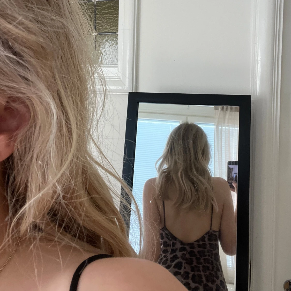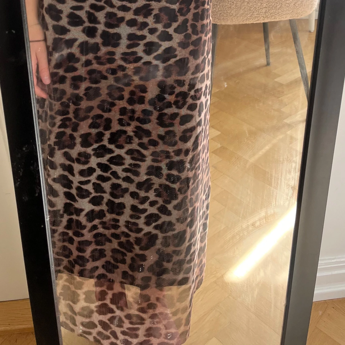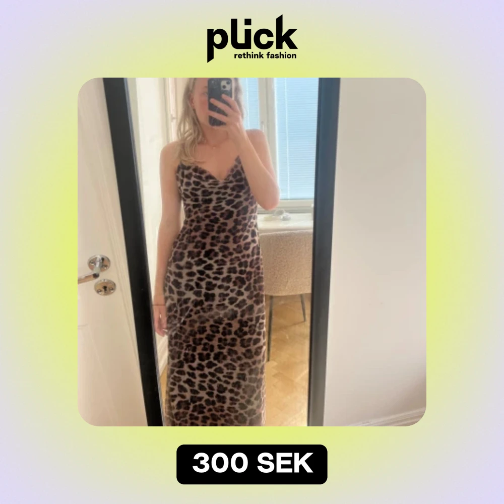 Såå fin leopard klänning i jättefint skick! Det finns Inget att anmärka på. Klänningen är två lager. Jag är 165 cm lång. Den är köpt i nice och minns ej butikens namn. Den är storlek L men sitter kanon på mig som har S/XS.