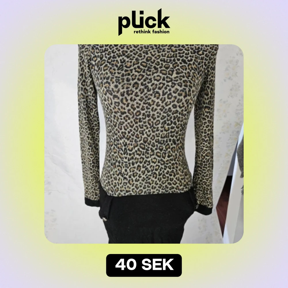 En leopardmönstrad klänning. Klänningen har långa ärmar och en stretchig passform. Den är huvudsakligen i leopardmönster med svarta detaljer vid ärmslut och nederkant.